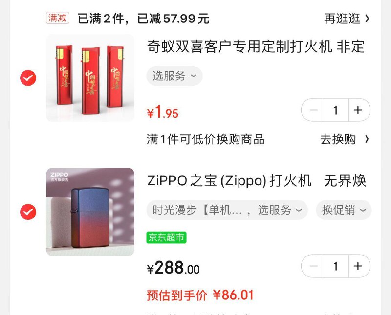 zippo叠5折券凑2件8折