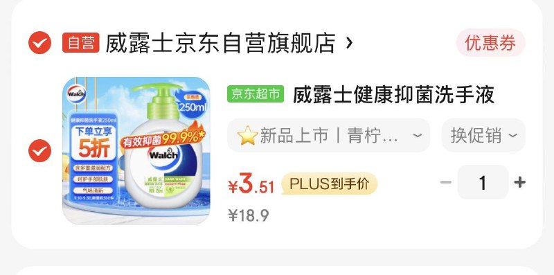 威露士洗手液弹券到手3.51亓
