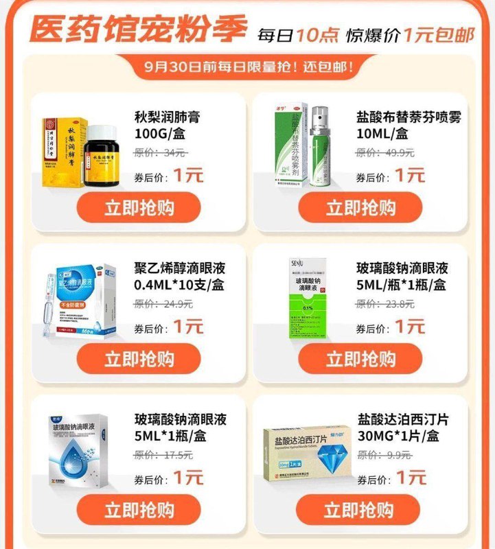10点医药抢券1亓
