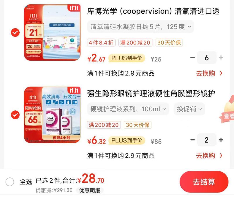 护理液5折 美瞳5折一起28.7