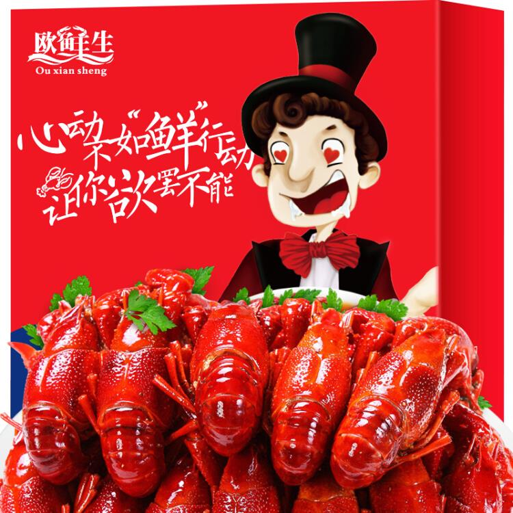 欧鲜生十三香小龙虾1.8kg4-6钱/33-50只净虾1kg,页面可领299-100券,plus会员买3件80.7