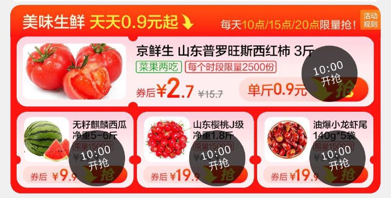 10点生鲜领券0.9亓