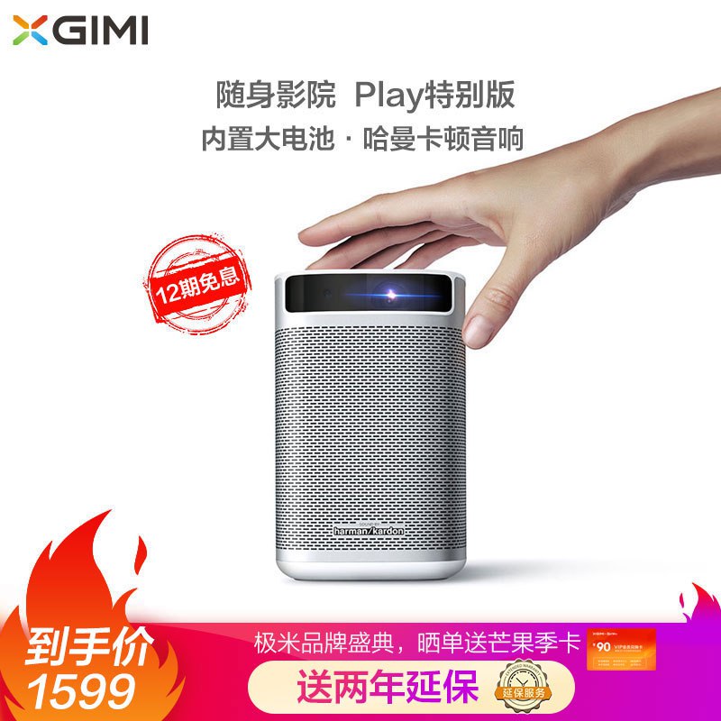 极米(XGIMI)Play特别版 投影仪家用 便携 迷你投影机 手机电视投影仪(内置大电池 哈曼卡顿音响),页面可领100券,1499