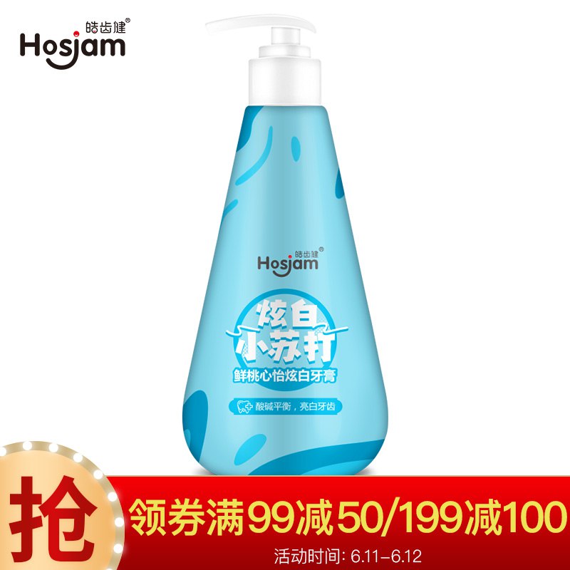 皓齿健Hosjam 炫白小苏打按压式牙膏120g(鲜桃薄荷),页面可领99-50券,plus会员买5件14.35